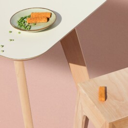 The furniture series "kids lunch" was created in 2020 as part of a job of furnishing the dining hall of the Freie Waldorfschule Berlin-Südost, accommodating approximately 100 children and teachers.